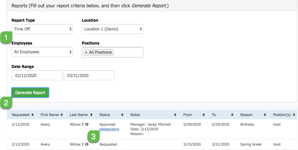 - Build a report for Time Off and select the date range