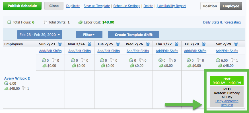 - Switch to employee view to deny approved RTO right from the scheduler