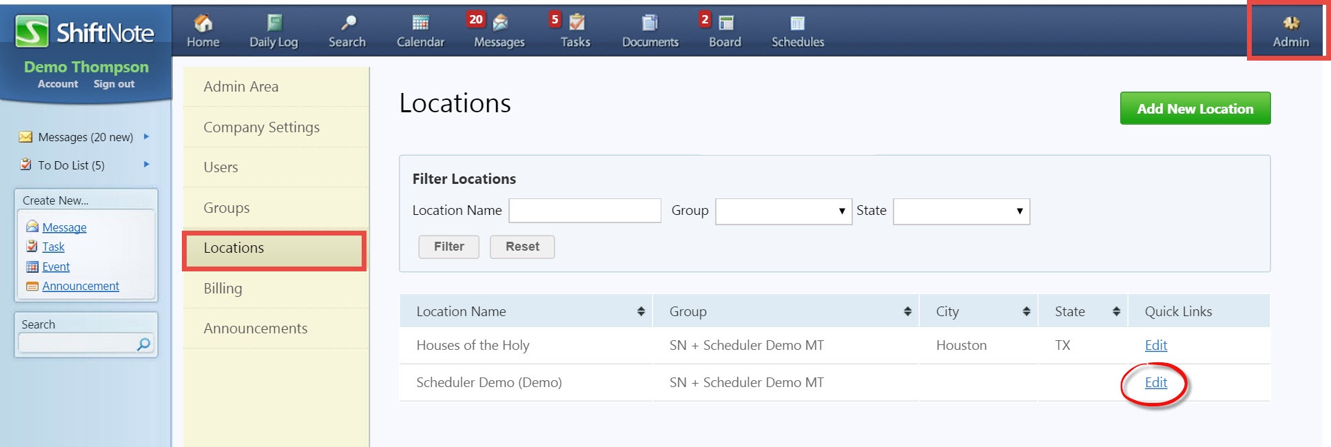 - Go to the Admin icon in the top right of your screen