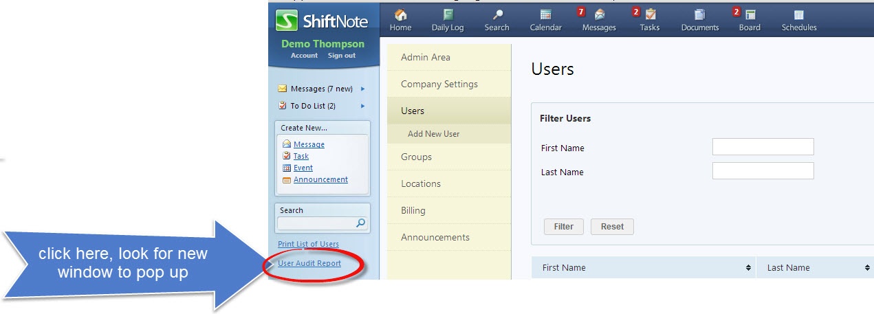 It’s good practice to run a user audit report once a quarter to make sure no one has access to your ShiftNote account that no longer works with the company, and to monitor the account activity.